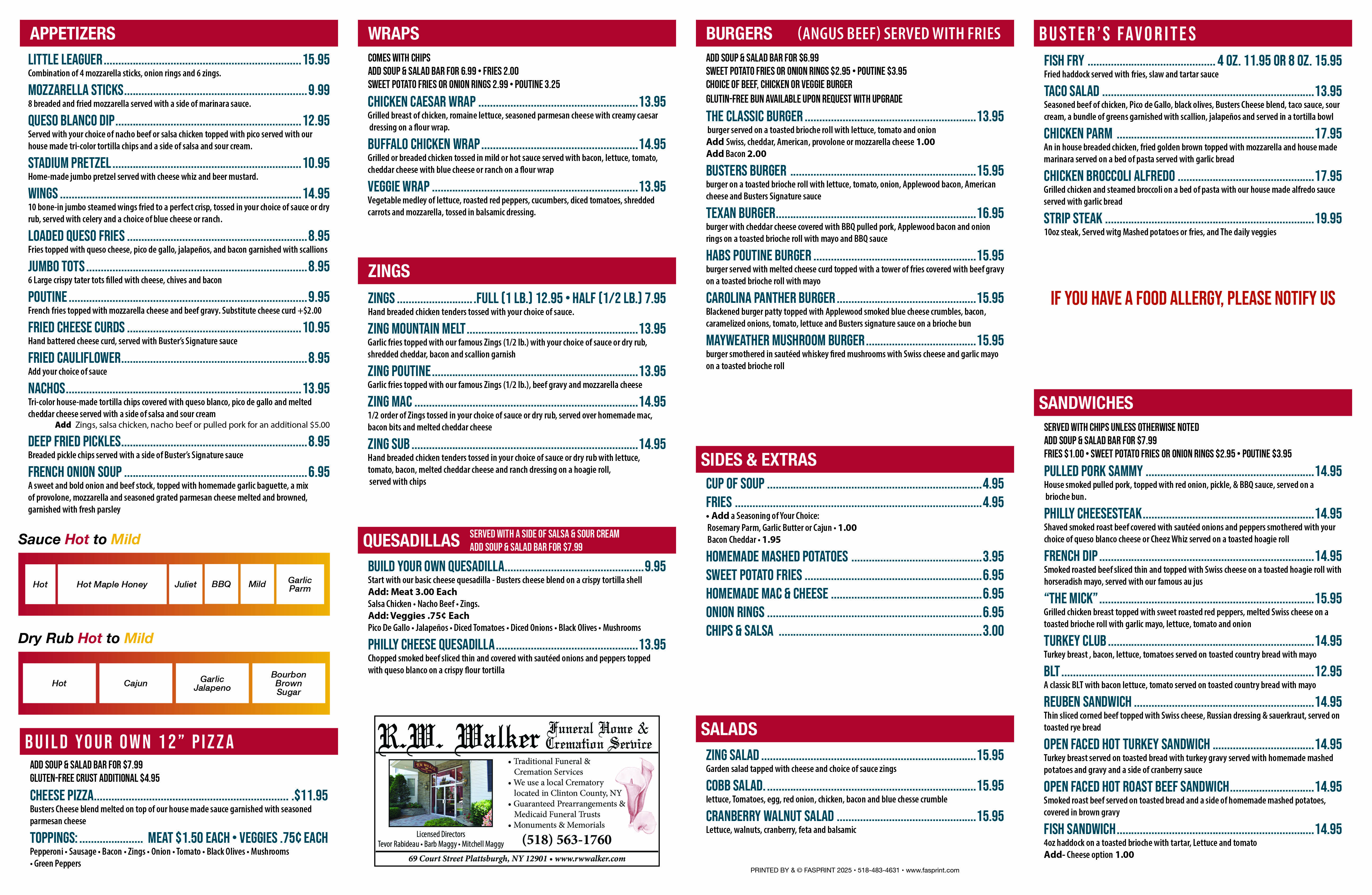Buster’s Restaurant December 2018 • Bar & Grill, New York • Ogdensburg 1130 Patterson St. • Ogdensburg, New York 13669 • 315-393-3545