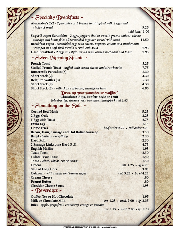 Fasprint Menus